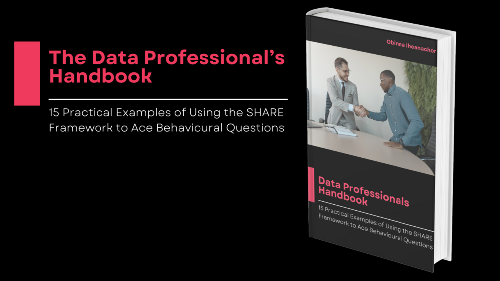 The Data Professional’s Handbook: 15 Practical Examples of Using the SHARE Framework to Ace Behavioural Questions is a comprehensive guide that will teach you how to use the SHARE framework to craft compelling answers that demonstrate your value and potential as a data professional.
